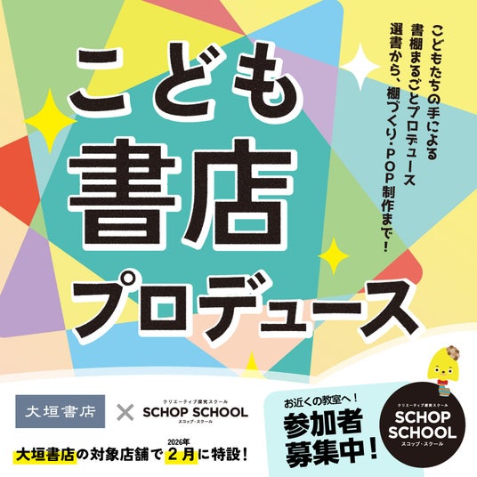 株式会社スコップ(東京都港区、代表取締役:岡本弘毅)と株式会社大垣書店(京都府京都市、代表取締役社長:大垣全央)は、子どもたちが書店の売場を企画・デザインする「こども書店プロデュース」を、2025年2月より大垣書店5店舗(京都・滋賀エリア)で開催いたします。子どもたちの感性を活かした売場づくりを通じて、地域と教育とクリエーティブを結ぶ新しい取り組みです。