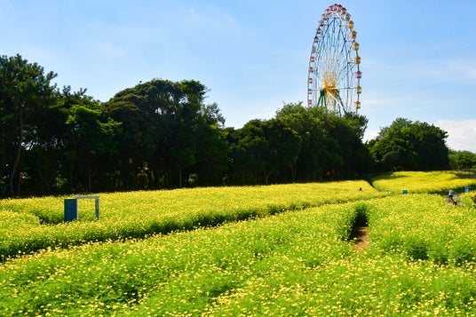 国営ひたち海浜公園は、茨城県ひたちなか市の太平洋岸にあり、春のネモフィラ、スイセン、チューリップ、初夏にはポピーやバラ、夏のジニア、ヒマワリ、秋にはコキア、コスモス、冬のアイスチューリップなど、彩り豊な花々が四季を通じて楽しめます。また、海抜100mからの眺望を楽しめる大観覧車をはじめ、ジェットコースターなど多彩なアトラクションが揃う遊園地「プレジャーガーデン」のほか、林間アスレチック広場やバーベキュー広場など、食事・スポーツ・ピクニック・・・遊び方は十人十色。魅力いっぱいの公園で、思い思いの時間をお過ごしください。