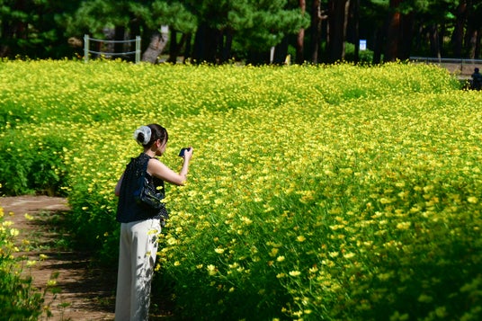 花畑の南側に新設された「みはらし台」からは、大草原フラワーガーデンを一望できます。高台から見下ろすと、黄色の絨毯のように広がる花畑の迫力と壮大さを感じることができ、晴れた日には、青空とのコントラストも抜群です。