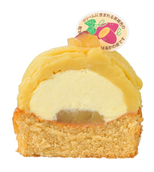 特長:栗の名産地、茨城県産の和栗を使用した季節限定モンブランです。和栗ペーストクリームや和栗あんに、まろやかな生クリーム入りホイップクリームとふんわり口どけのよいマロン風味スポンジを組み合わせ、和栗の甘み、コクのある味わいと、ふくよかな香りを堪能できるよう仕上げました。