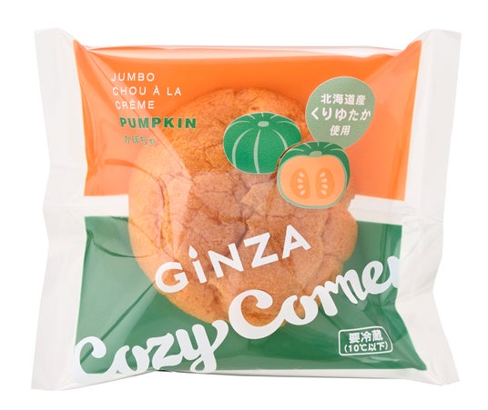 特長:北海道産かぼちゃ「くりゆたか」を使用した、季節限定のジャンボシュークリームです。くりゆたかの豊かな甘みをいかした‟かぼちゃカスタード”を、歯切れと口どけのよいシュー皮に詰めました。かぼちゃカスタードとシュー皮が一体となって口どけてゆく食感をお楽しみください。