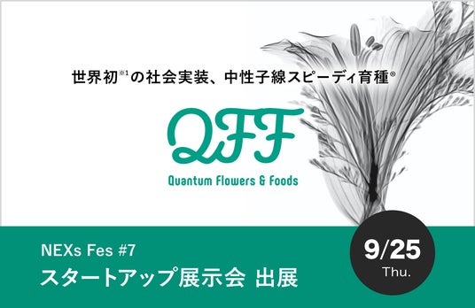 株式会社クォンタムフラワーズ&フーズ(本社:茨城県水戸市、代表取締役CEO:菊池伯夫、以下「QFF」)は、2025年9月25日(木)に東京都千代田区の「NEXs Tokyo」(新東京ビル4階)で開催される、東京都主催のスタートアップ展示会「NEXs Fes #7/スタートアップ展示会」に出展いたします。当社は、中性子線スピーディ育種(R)の育種技術や産業応用の可能性についてご紹介し、連携・協業の新たな機会を創出したいと考えております。
