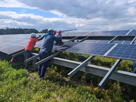 Upsolar製330W旧サイズパネル 60枚分の交換作業の様子(福島県)