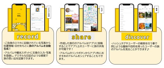 スマートフォンの写真を選ぶだけで、位置情報や日付から旅の記録を手軽に残せるのが特徴です。さらに、他のユーザーがどんな旅をしているのかをマップ上で見ることができ、自分では気づかなかった旅の魅力や観光スポットを発見できます。