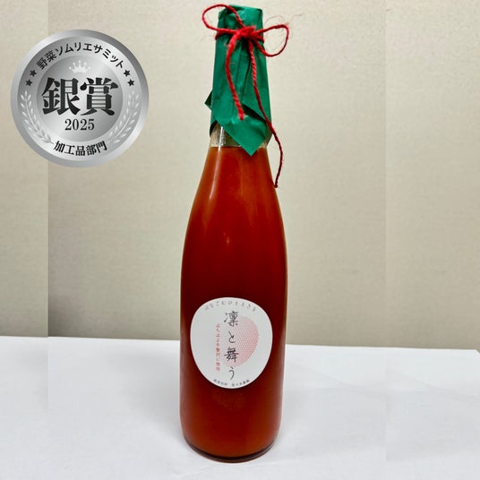 トマト農家が作る無塩、無添加のストレートトマトジュース。福岡県糸島市産のトマトを使い、製造時のトマトの状態によりすっきりした味わいや、濃厚な甘味など一年を通じて飽きることのないトマト本来の風味、味わいを感じられるジュース。