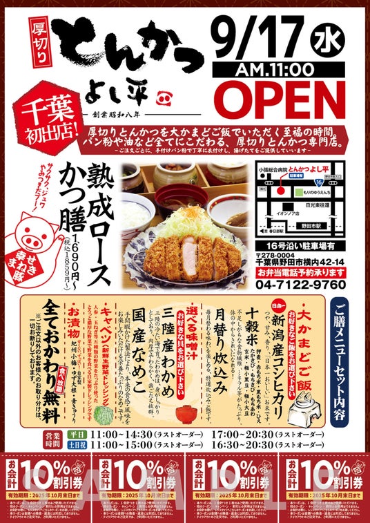 『厚切りとんかつ よし平 野田店』 チラシデータ ※近隣エリアに配布予定