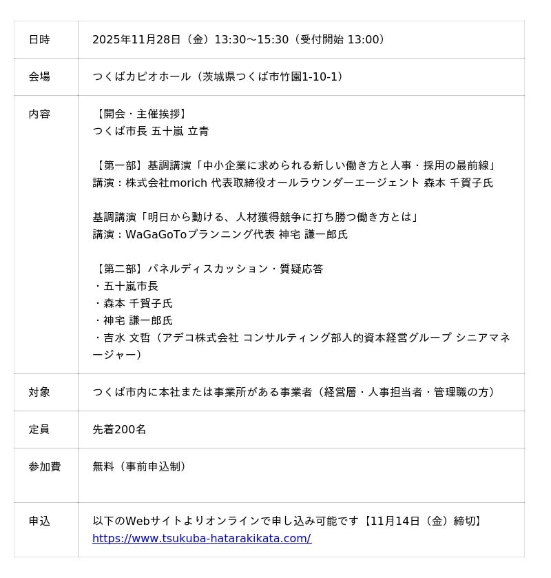 つくば市働き方改革・労働環境整備セミナー運営業務事務局