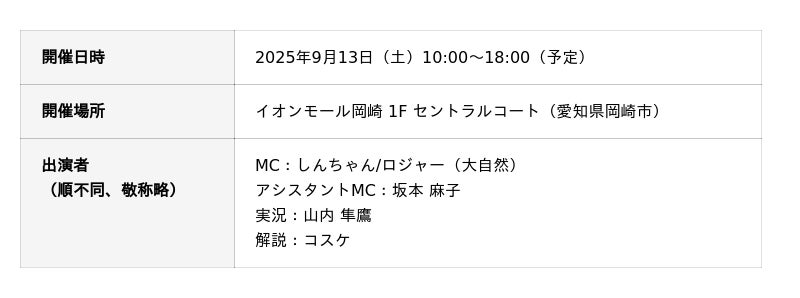ご好評をいただいております入場無料の大人気オフラインイベント「ガンホーツアー2025」。次回は今週末、2025年9月13日(土)にイオンモール岡崎(愛知県岡崎市)にて開催いたします。