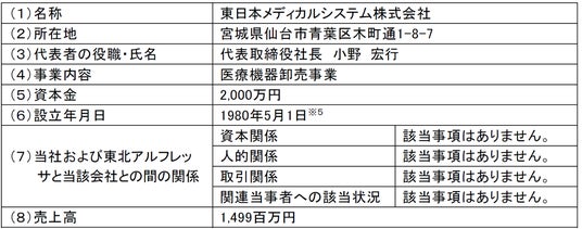 (注)今回の東北アルフレッサによる株式の取得(子会社化)に伴う東日本メディカルシステムの名称および本社所在地の変更