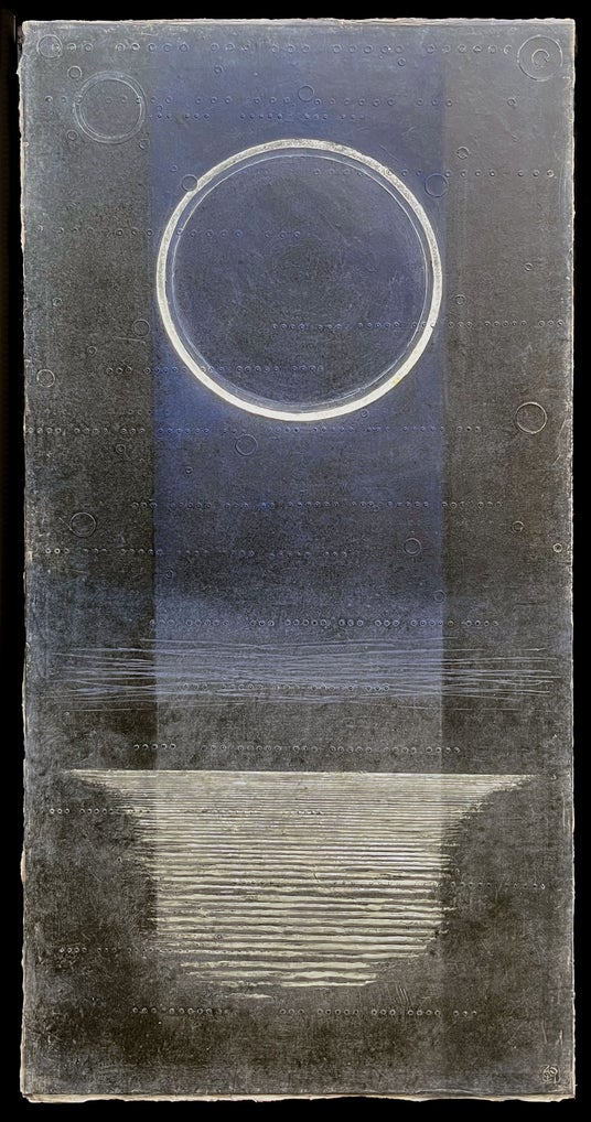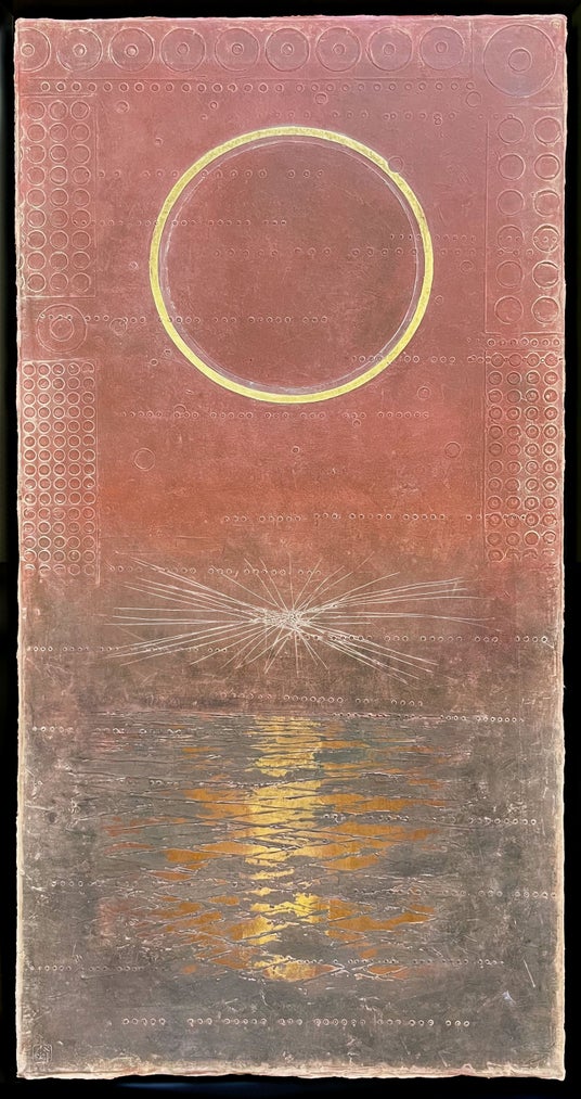 「昃(しょく)」昃(しょく)とは、日が西に傾く昼過ぎのこと。西方浄土をイメージして、日輪と水を生命の象徴として描いています。