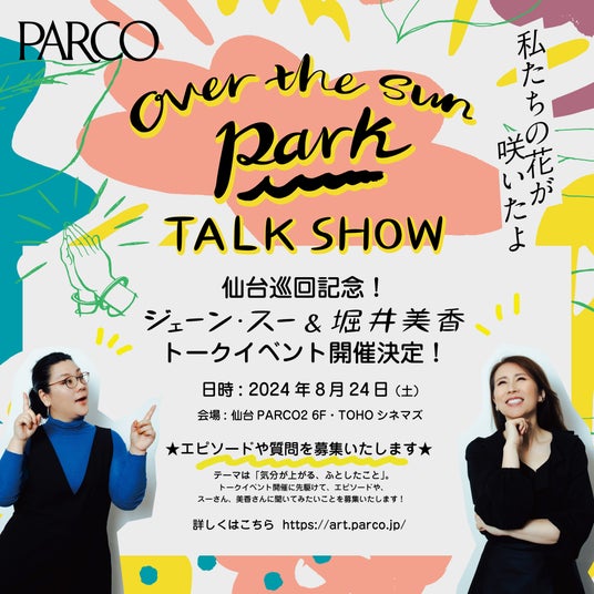 番組初の展覧会 『OVER THE SUN PARK~私たちの花が咲いたよ~』は、2024年1月より渋谷、名古屋、心斎橋のPARCO各店にて巡回し大好評にて終了しましたが、この度、多くのリクエストにより仙台PARCOでの開催が決定しました。