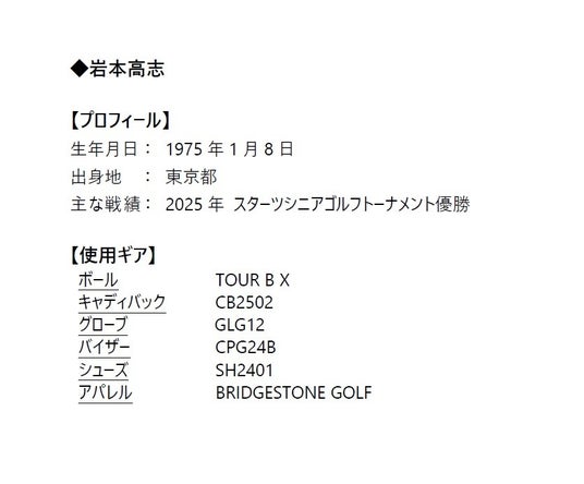 IASSシニア・プロアマで優勝することができ、本当に嬉しく思います。今季2勝目を挙げることができ、自分にとって大きな自信になりました。いつも応援してくださる皆様、そして自分のプレーを支えてくれるボール「TOUR B X」に感謝しています。飛距離とスピンの両立が、この大会でも大きな力になりました。これからも応援よろしくお願い致します!