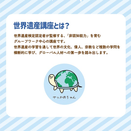 ますます進展するグローバル社会において、子ども達が大きく羽ばたけるよう、2年の期間をかけて準備をしてきた「グローバル教養が身につく 世界遺産講座」の2期生受講者募集を現在行っております。