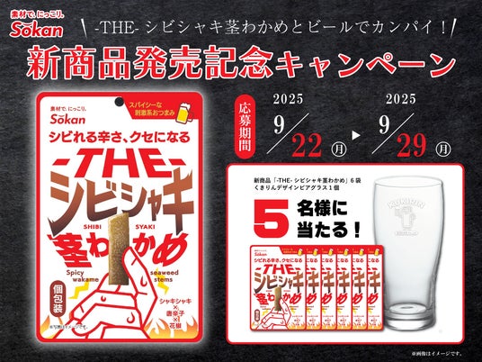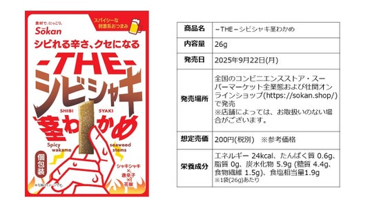 株式会社壮関(本社:栃木県矢板市 代表取締役社長:板山 健一)は、新商品『‐THE‐シビシャキ茎わかめ』を2025年9月22日(月)より全国のコンビニエンスストア・スーパーマーケット全業態および壮関オンラインショップ(https://sokan.shop/)で発売いたします。
