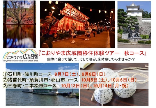 福島県郡山市は、福島県外在住で「こおりやま広域連携中枢都市圏(通称:こおりやま広域圏)」への移住に関心がある方を対象に、圏域内の魅力を伝えるとともに、移住後のミスマッチを軽減するための移住体験ツアーの参加者を募集しています。