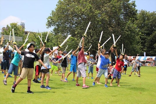 防災チャンバラ合戦片手にスポンジ製の刀を持ち、もう片方の腕についた「命」と呼ばれるボールを落とし合う、大人数参加型の合戦イベントです。チームで協力して挑むことによって、自分が助かる「自助」と、協力して助かる「共助」について楽しく学べます。