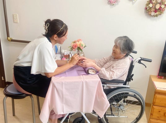 ※埼玉県で活動するケアビューティストが施設でネイルケアを行う様子
