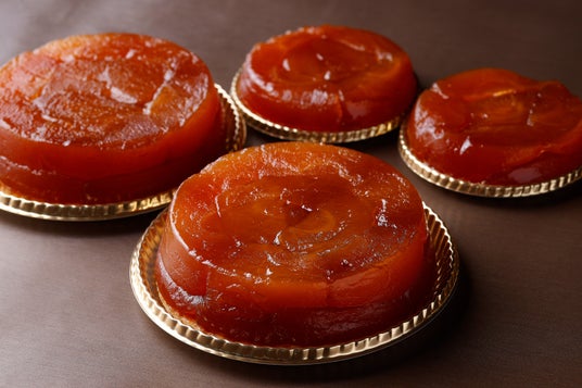 煮たりんごをカラメルでさらに煮ることで、美しい飴色に仕上げたスイーツです。りんごの品種は「紅玉」で、甘酸っぱい味覚と柔らかな果肉の食感をお楽しみいただけます。