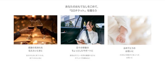 大事なイベントや大切な方へのおもてなしの需要として移動をプレゼントするニーズも増加していることやタクシーアプリの普及に伴い、2024年4月から試験的に個人向けとして「GOチケット」をeギフトのプラットフォーム上で販売を開始し、好評いただいております。