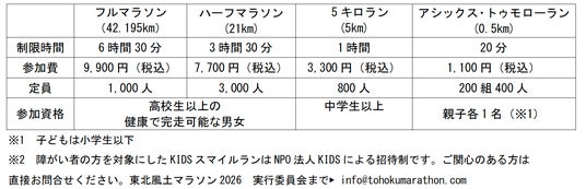 大会名称:東北風土マラソン2026 (英記名:Tohoku Food Marathon 2026)