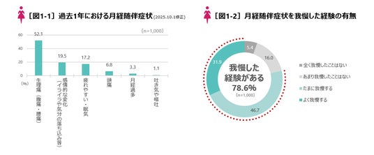■実施時期:2025年8月6日(水)~8月7日(木) ■調査手法:インターネット調査■全国の15~44歳の、月経があり月経随伴症状を自覚する働く女性1,000人(正規・非正規雇用 各500人)(2025.10.1 修正)
