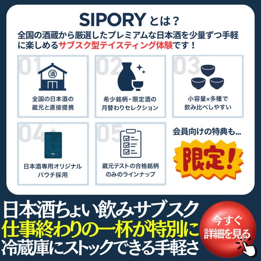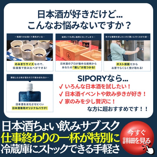 ※初月50%OFFキャンペーン中!現在、SIPORYでは初めてご利用いただく方を対象に、初月50%OFFキャンペーンを実施しております。ぜひこの機会に、日本酒の新しい楽しみ方をご体験ください。