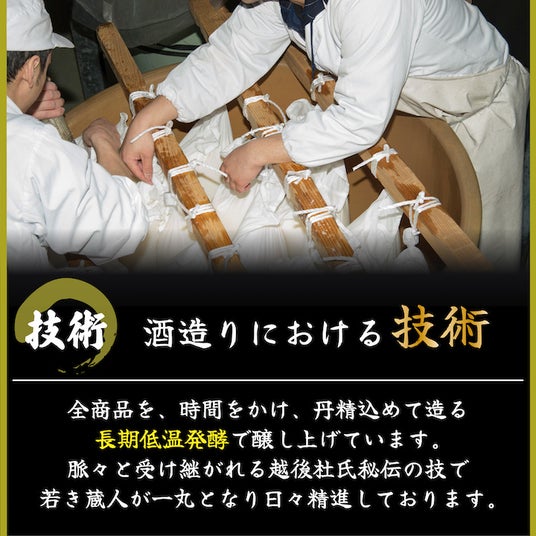 新潟の豊かな自然が育んだ酒米と、蔵人の卓越した技が融合し、他では味わえない深みのある味わいを生み出しました。
