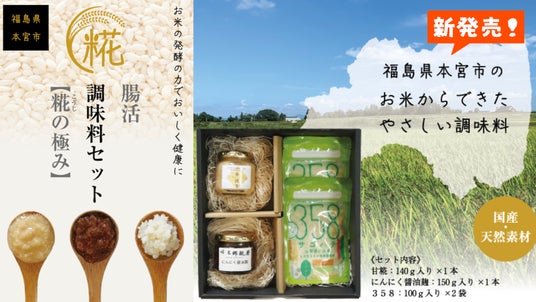 お米の発酵の力でおいしく健康に!腸活調味料セット【糀の極み】本宮の3軒の米農家が手間ひまかけてつくりました。糀の日に新発売と同時にダブルキャンペーンを開始!