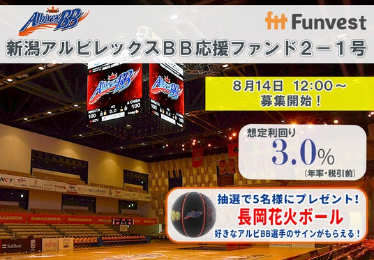 「未来をわかちあう投資」を提供する「Funvest(ファンベスト)」(以下、Funvest)は、「新潟アルビレックスBB応援ファンド2-1号」(以下、本ファンド)の募集を8/14より開始しますので、お知らせいたします。