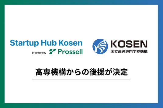 高専生を対象にしたキャリアパートナー事業を展開する株式会社プロッセル(本社:新潟県新潟市、代表取締役CEO:横山和輝、以下「プロッセル」)は、独立行政法人国立高等専門学校機構(所在地:東京都八王子市、理事長:谷口 功、以下「高専機構」)より高専生向けのオンラインコミュニティ「Startup Hub Kosen」へ後援をいただくこととなりました。「Startup Hub Kosen」は高専生のためのオンラインコミュニティで、高専生のアントレプレナーシップマインドを醸成することができます。今後も高専発のスタートアップ創出や起業家教育に寄与する取り組みを推進してまいります。