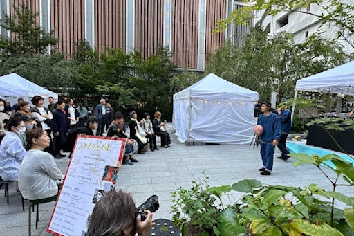 古くより五穀豊穣や商売繁盛などのご利益があるとして信仰されている福徳神社に隣接した広場「福徳の森」を会場に、観世流能楽師による能の特別奉納公演、宮本卯之助商店プロデュースによる和太鼓演奏、書道家・葵雋卿によるライブ書道パフォーマンス、茶道家・新山宗與による茶道御点前など、普段なじみのない皆様に向けても日本の伝統文化に触れ合う機会をご提案します。
