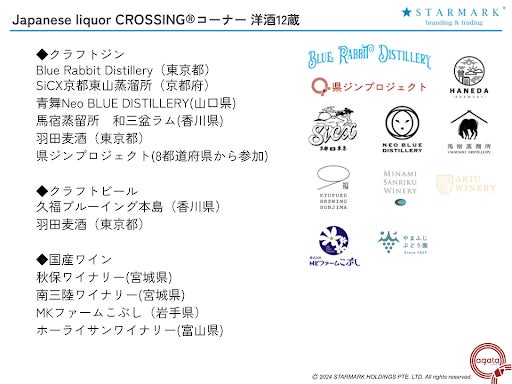 ◆クラフトジン/ラム:Blue Babbit Distillery(東京都)、SiCX京都東山蒸留所(京都府)、青舞Neo BLUE DISTILLERY(山口県)、馬宿蒸留所 和三盆ラム(香川県)、羽田麦酒(東京都)、県ジンプロジェクト(8都道府県から参加)