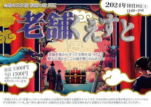 謎解きイベント「老舗くえすと」前売り1,300円(税別)、当日1,500円(税別)