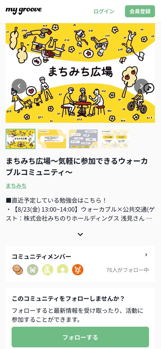 - 「まちみち広場」コミュニティにこちらのURLよりアクセス: https://mygroove.city/organizations/13/projects/41