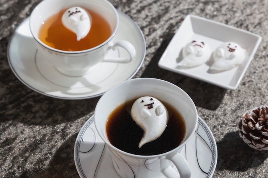 オプションメニューは3アイテムをご用意。色の変わるオリジナルのアイスハーブティー(¥500)のほか、おばけフォルムのマシュマロ(¥300)と、フライドポテト(¥500)をご用意いたします。