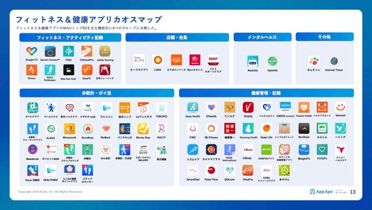 フラー株式会社(本社:新潟県新潟市、代表取締役:渋谷修太、山崎将司、以下「フラー」)は、アプリ市場分析サービス「App Ape(アップ・エイプ)」で蓄積するデータをもとに、フィットネスアプリや健康管理アプリなどの最新動向や特徴をまとめた「フィットネス&健康アプリ市場調査レポート2024」を公開しました。