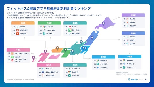 各都道府県で異なるフィットネス&健康アプリが人気を集めており、地域ごとの健康ニーズやユーザーの好みに応じたアプリがランクインしました。