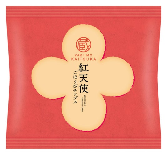 パッケージデザインは、さつまいもを想起させる色と、スライスした紅天使を花のように並べたイメージで、ほっとひと息つく“ごほうび時間”や贈り物にぴったりです。