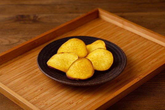 国産さつまいものオリジナルブランド「紅天使」を厚めにスライスし、じっくり丁寧にフライしました。素材のおいしさそのまま、味つけなしで仕上げました。スライスすることで「紅天使」の持つ色合いと、素材そのものの濃厚な甘みとザクッとした食感が楽しめます。