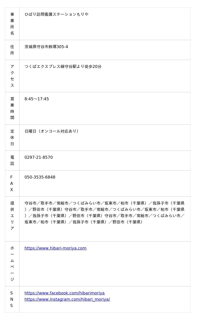 また、地域密着の事業所として、今後、守谷市を中心に拠点を拡大し、茨城県内での認知度向上と、より質の高い医療の提供を目指します。