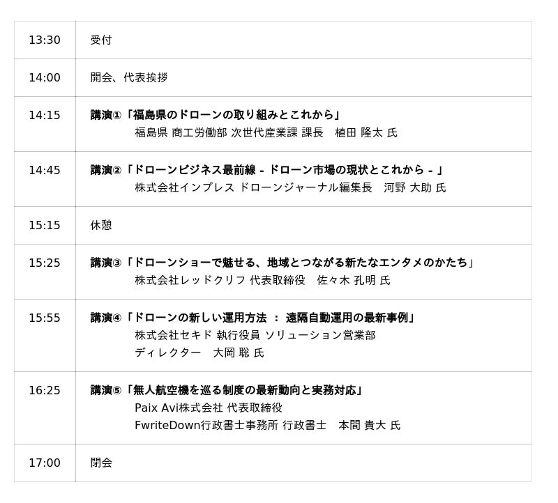 名称:第4回 福島ドローンサミット2025日時:2025年11月27日(木)14:00~17:00(受付開始13:30)