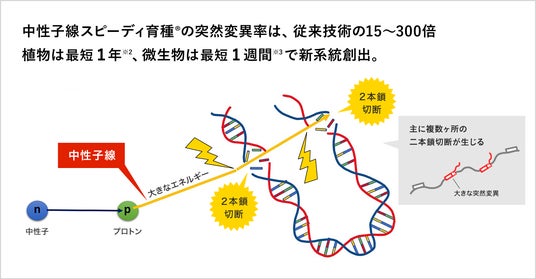 高効率で、微生物にも最適な新しい品種改良技術「中性子線スピーディ育種(R)︎」のメカニズム