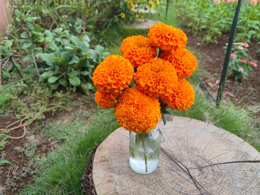秋のマリーゴールド摘み