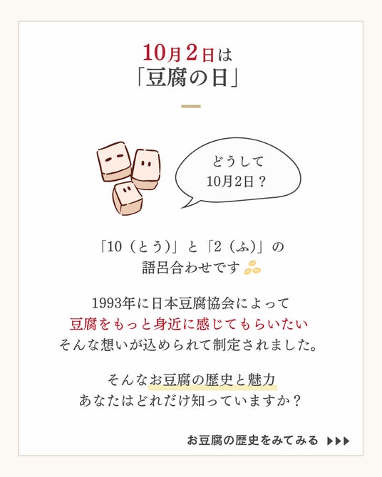 湘南豆富のインスタグラムでは、とうふの日にちなんでとうふの歴史と魅力をまとめたコンテンツを配信しています。