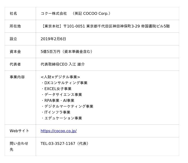 コクー株式会社は、労働人口減による人手不足を「人財」×「デジタル」で解決し、企業の成長・発展ならびにより良い社会に貢献することを目的に様々なサービスを創造し提供。