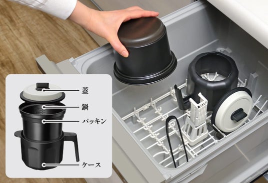 内面はふっ素樹脂加工でこびりつきにくく、食洗機対応です。
