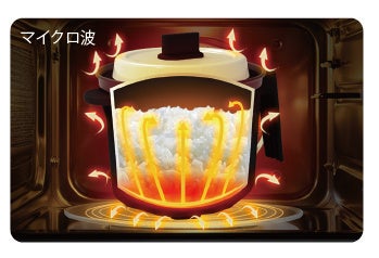 底面の特殊素材がマイクロ波を受けて発熱し、食材をムラなく加熱します。内部で対流が起こることで、均一な仕上がりが期待できます。