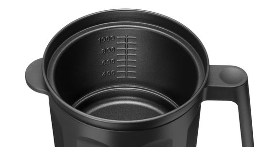 汁物や炊飯に適した形状で、調理の目安が分かりやすい容量メモリ付きです。