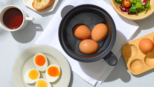 電子レンジのマイクロ波を直接食材に当てないので、ゆで卵も作れます。従来の鍋調理と比べて水の使用量を抑えられます。