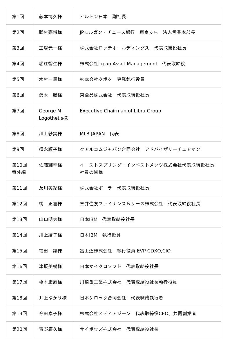■過去にご出演いただいた経営者の皆様(法人名・役職はインタビュー当時のもの)